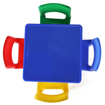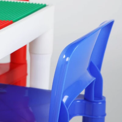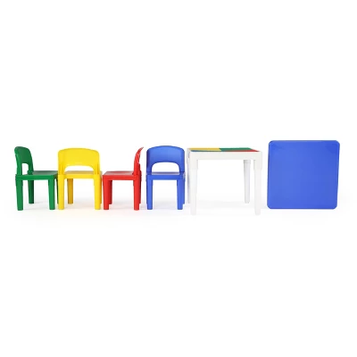 Encourage creativity and imagination with the Humble Crew Kids 2-in-1 Plastic Square Activity Table and 4 Chair Set. This versatile toddler table features a smooth removable table cover, allowing you to transform from a flat tabletop to the ultimate construction surface in just moments. Use the flat table cover for coloring, arts and crafts, slime, board games and whatever else your little one can dream up. Then, remove the tabletop cover to reveal a construction table play surface compatible for use with most plastic building blocks. The lightweight plastic construction allows children to easily move the chairs around on their own to achieve their perfect playtime configuration. This multifunctional plastic table and chair set is easy to clean and comes in a fun and bright color palette perfect for little girls and boys. This square table set includes 4 lightweight chairs and is perfectly sized for children ages 3 and up. It is easy to assemble with snap-together components; no hardware required! Building blocks are not included.