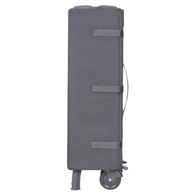 Lightweight and portable, this playard comes with a travel tote bag so you can easily take it on trips to the park or beach. The one-hand locking mechanism allows you to easily open or close the Portable Playard and the two large wheels with brakes provide greater mobility and stability.