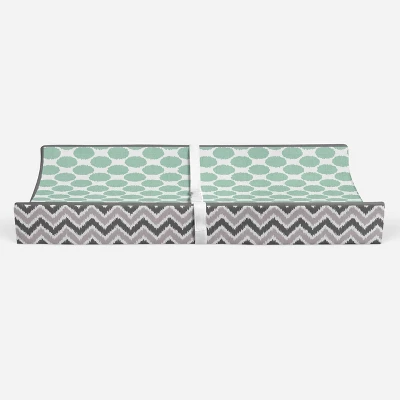 Bacati - Ikat Zigzag Mint Dots Muslin Changing Pad Cover
