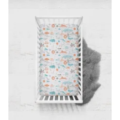 Bacati – Jungle Safari Boys Aqua/Orange 100 Percent Cotton Muslin Universal Baby US Standard Crib Or Toddler Bed Fitted Sheet
