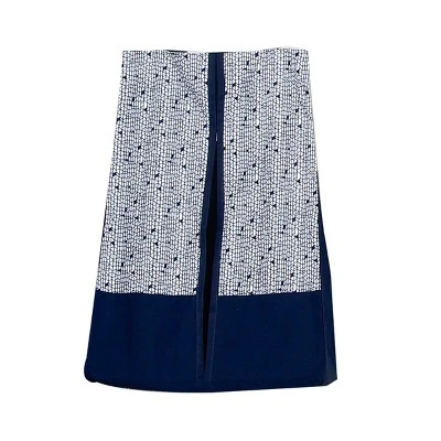 - This Bacati 6-piece Crib Set Includes Reversible Comforter/Playmat (33 x 43 inches), Crib fitted sheet (52 x 28 x 6 inches), Crib Skirt/Dust ruffle (13 inch drop) Diaper Stacker (holds more than 30 newborn diapers), Reversible Long Crib Rail Guard Cover (52 x 12 inches) and Window Valance (15 h x 56 w inches with 1.75 inch Rod Pocket) in fun, colorful and signature prints in 100 percent cotton 200 Thread Count percale fabrics. Designed in United States by Experienced Designers. Many coordinating items available to purchase separately in this Bacati Noah Mint Navy Bedding Collection.