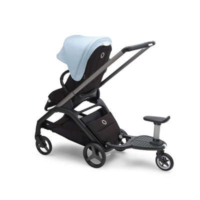 With the Bugaboo Comfort Wheeled Board+, your toddler can hop on and hop off anytime during your strolls as the wheeled board can attach to your stroller in just two clicks. The Bugaboo comfort wheeled board+ makes it easier to stroll with multiple co-pilots. When not in use, fold it upright or easily remove and stow it away altogether.