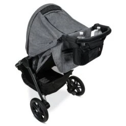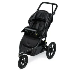 Treaded rubber tires, full suspension, and front swivels help maintain a smooth ride for both passengers in every configuration. One-touch brakes keep the stroller in place when parked. A padded push-handle, parent tray with two cup holders, and large storage basket with front and rear access provide added convenience for mom or dad.