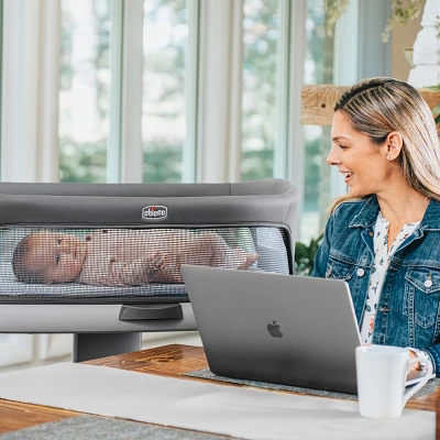 - Sturdy, level bassinet features soft mesh sides for visibility and ventilation