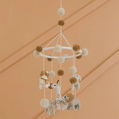 This charming safari style ceiling hanging is the perfect room dĂ©cor item to accent the nursery and captivate your baby’s attention. A neutral color palette combined with handmade pom poms and embroidery details create an authentically artisanal feel. Style with our Crane Baby bedding for a curated look. Thoughtfully and ethically sourced.
