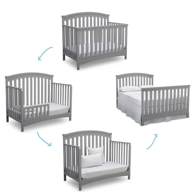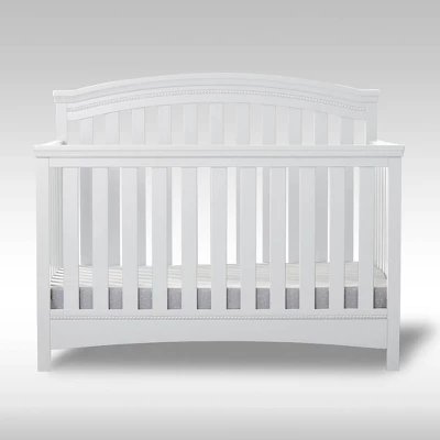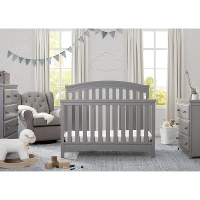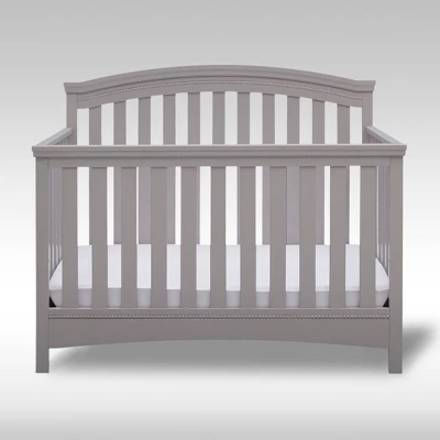 You’ll love the Emerson 4-in-1 Convertible Crib from Delta Children for its classic design and subtle traditional details that work with any décor. Featuring an arched silhouette with airy slats around all sides and bead detailing on the headboard and footboard, this stylish crib will help you create a restful and beautiful nursery. Designed to grow along side your child, this strong and sturdy crib has three mattress height positions that allow you to lower the crib as your little one matures, plus it converts into a toddler bed, daybed and full size bed (Toddler Guardrail and Full Size Bed Rails sold separately). Epitomizing timeless style, the Emerson 4-in-1 Convertible Crib will be the centerpiece of your child’s space at any age. To complete the look, pair with the coordinating Emerson 3 Drawer Dresser with Changing Top (sold separately). Delta Children was founded around the idea of making safe, high-quality cribs affordable for all families. That’s why all Delta Children cribs are JPMA certified, and are tested above and beyond industry standards to ensure the well-being of every user.