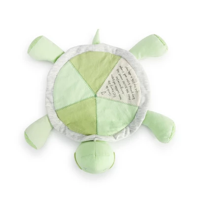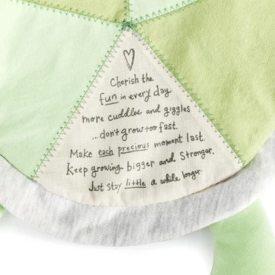 - Stuffed animal blankie is made of plush fabric with acrylic details with sea green finish; Soft fabrics paired with simple stitched messaging will make this toy a child’s favorite