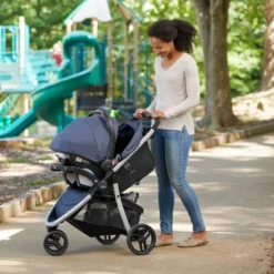 The Graco® Modesâ„¢ Nest Travel System makes it easy to stay connected with your little one by bringing baby closer than ever. Raise the Slide2Meâ„¢ height-adjustable seat or infant car seat to bring your baby closer for face-to-face smiles and precious interactions on everyday strolls. This 3-in-1 stroller can be used as an Infant Car Seat Carrier, Infant Pramette, and Toddler Stroller. Adjust the stroller seat or your infant car seat to any of three height positions and choose parent-facing or forward-facing mode to find just the right ride for your little one. Modesâ„¢ Nest Travel System includes the Graco® SnugRide® 35 Lite Elite Infant Car Seat, rear-facing from 4-35 lb, and the stroller seat converts to infant pramette mode for comfortable strolls with baby from day one. An expandable storage basket creates even more space for parent and baby essentials. Every ride is smooth and convenient with the lightweight aluminum frame and one-step, self-standing fold. Extra touches such as a leatherette handle, removable cup holders, and a large canopy with peekaboo window ensure comfort every day. With Modesâ„¢ Nest Travel System, you’ll be strolling together, closer than ever.