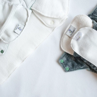 Each Rumparooz 6r Soaker is a pair of two inserts – a long, full size insert and a smaller contoured insert – that are inserted into the pocket of the Rumparooz or any pocket style diaper. The inserts can be arranged in six different configurations to give maximum adjustability to the absorbency and the fit of the diaper. The Rumparooz 6r Soaker comes in a variety of fabrics: microfiber, hemp and rayon from bamboo. Pack of 10 Rumparooz 6r Soaker sets.