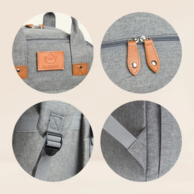 KeaBabies Rove Diaper Bag sized large at 12″(L) by 7″(W) by 16.5″(H), comes with 18 storage compartments, stroller buckles, a diaper changing mat, 3 insulated bottle pockets and a pacifier pod. Made with premium, waterproof oxford fabric for versatile usage. Padded backrest and mesh-cushioned shoulder straps for the extra support you need while traveling with your baby. This modern parent’s backpack is sure to turn heads anywhere you go!