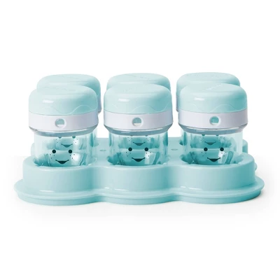 - Freezer Tray holds six 4oz portions; Date-Dial Cups are 3oz; Reusable Pouches hold up to 3oz
