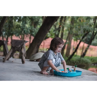 Let’s go for a swim in the ocean with the PlanToys Water Play Set! This set features 1 rubber tray, 1 paddle boat, 1 sailing boat, 1 rope, 2 figures, 1 log, 3 fish, 2 different heights of trees and 1 bush for imaginative play. Kids can adjust the accessories and create their very own water world according to their creativity. Develop fine motor skills, strategic planning ability and spatial recognition through play. Suitable for children ages 3 years and older. Sustainably made in Thailand with chemical-free rubberwood, formaldehyde-free glue, organic pigments and water-based dyes.
