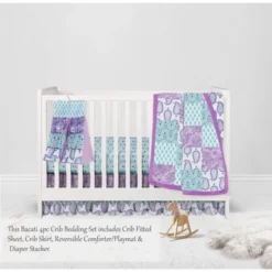 Bacati – Paisley Isabella Purple Lilac Aqua 10 Pc Crib Bedding Set With 2 Crib Fitted Sheets