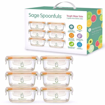 Made from super-strong, temperature shock resistant borosilicate glass, Sage Spoonfuls 6-pack of glass 4 oz baby food storage jars can safely go directly from freezer to microwave or oven without the need to defrost first. Conveniently portion, serve, store and warm your baby food all in the same container! Airtight and leakproof snap lids prevent freezer burn, keep food fresh, and liquids contained. Ideal for at home or on-the-go. Measurement marks to ensure perfect portions. These super durable glass baby food containers are perfect for homemade baby food, baby cereal, snacks, yogurt, hummus, and more! Dishwasher, freezer, microwave, and oven-safe. BPA, phthalate, lead, and PVC-free.